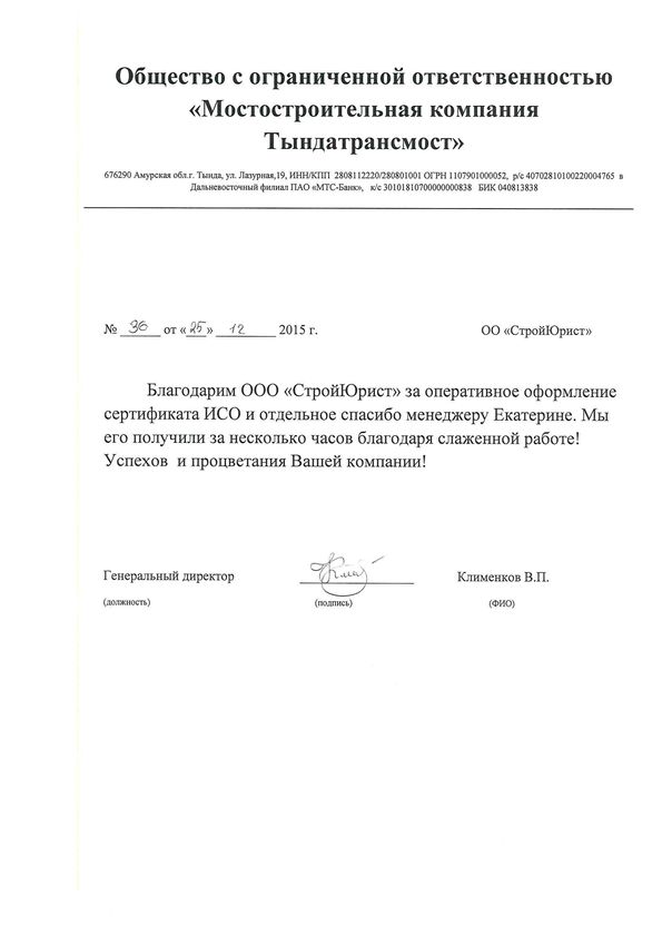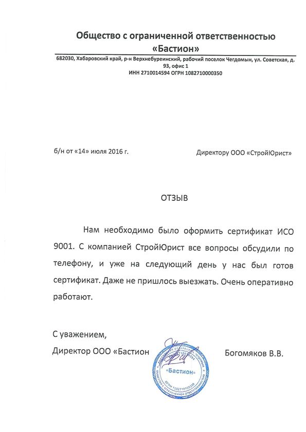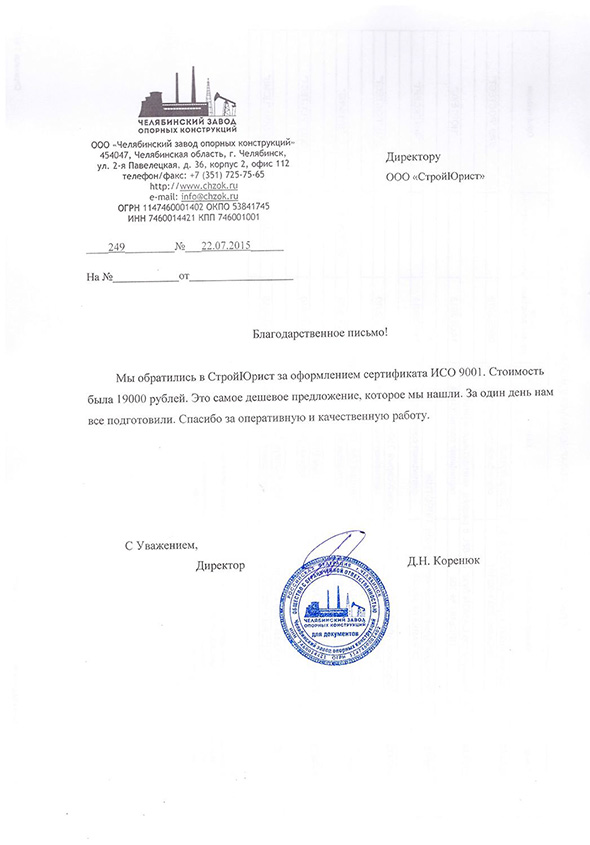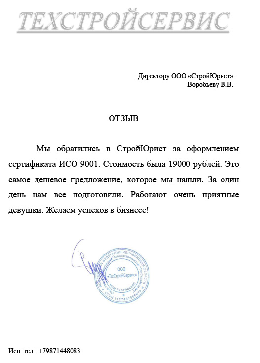 Отзывы клиентов "СтройЮрист" по ISO в Калуге