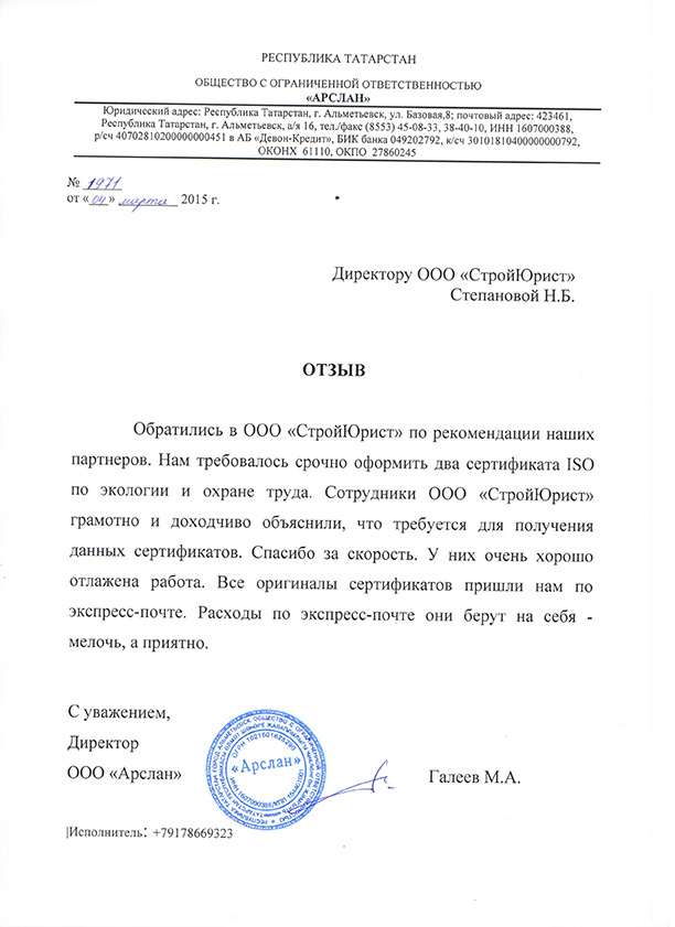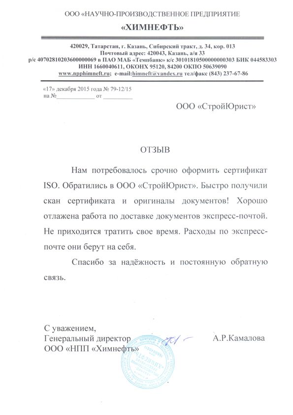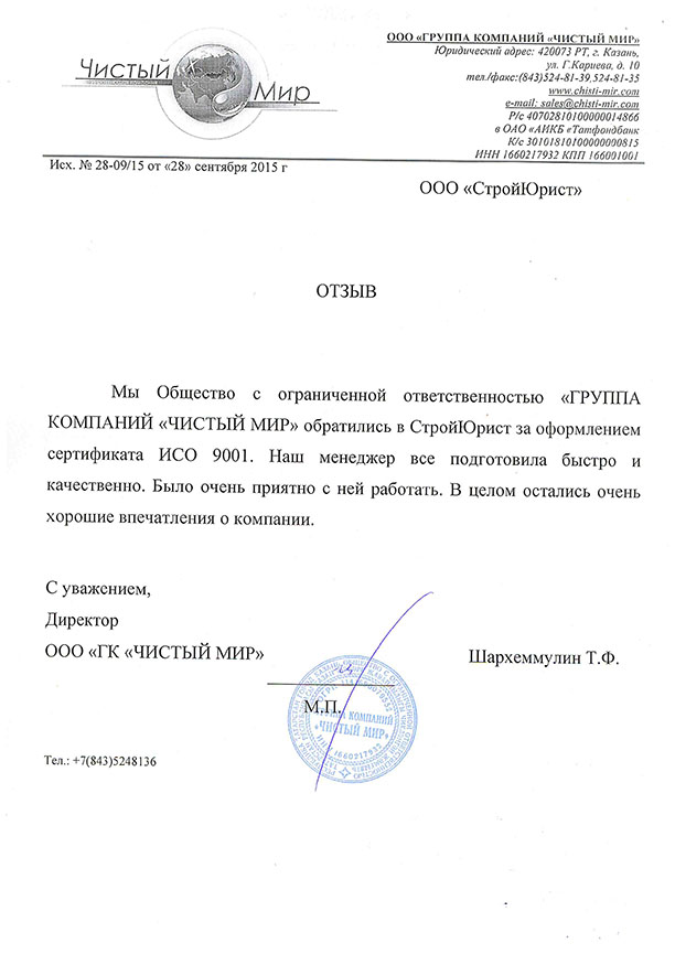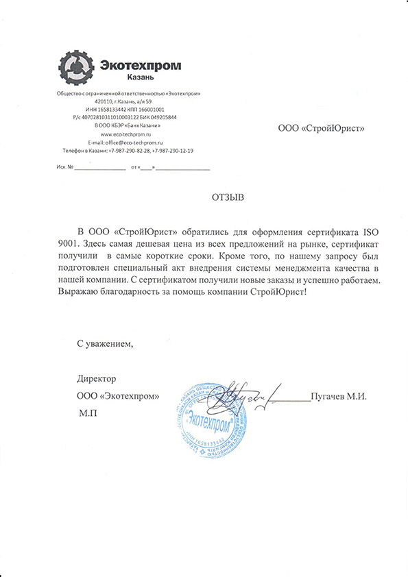 Отзывы клиентов "СтройЮрист" по ISO в Калуге