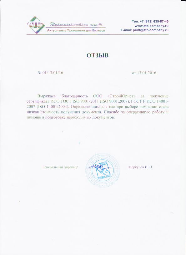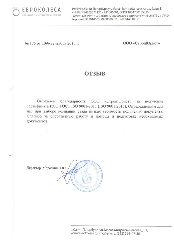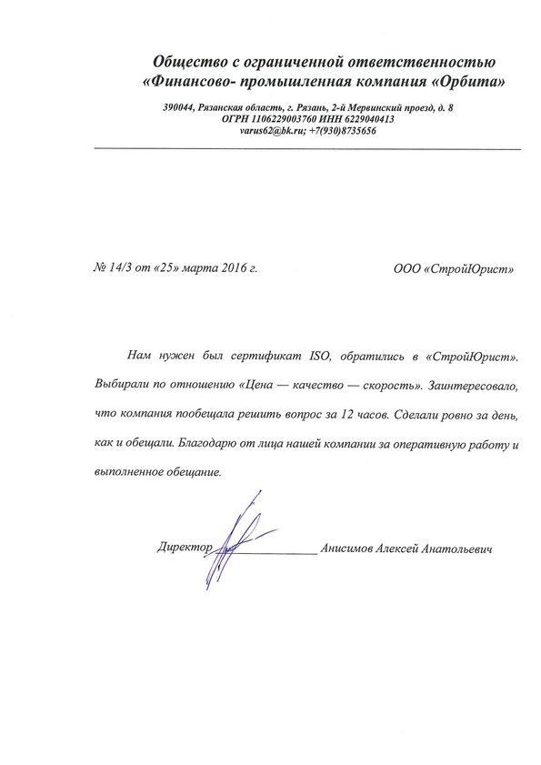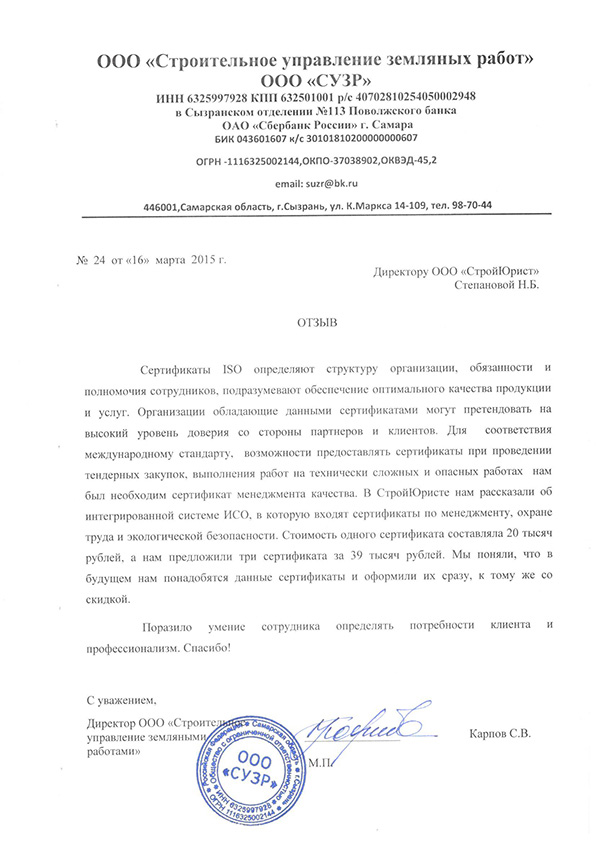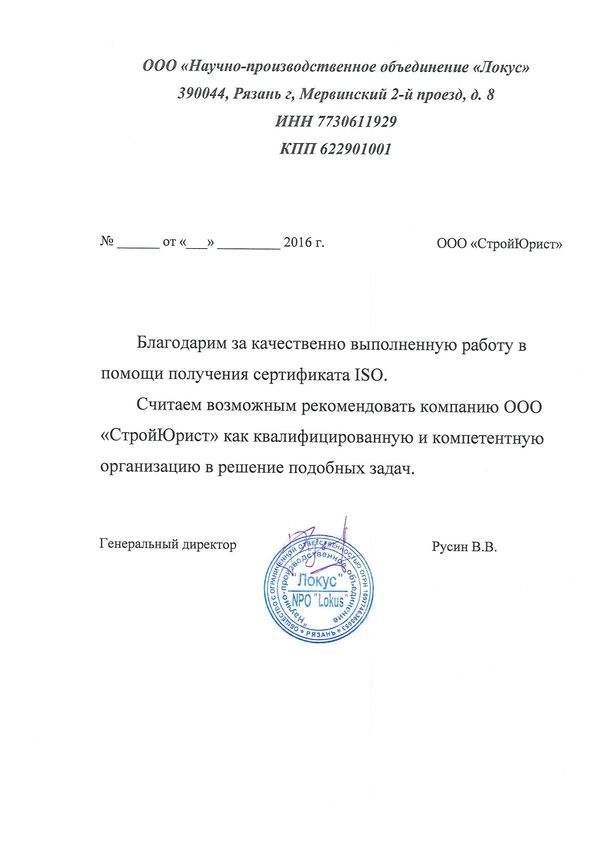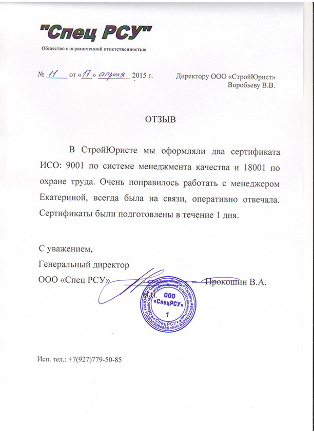 Отзывы клиентов "СтройЮрист" по ISO в Калуге