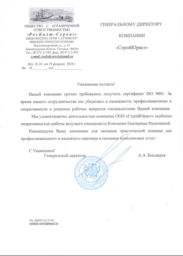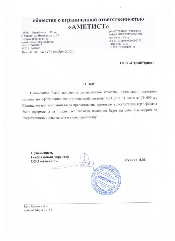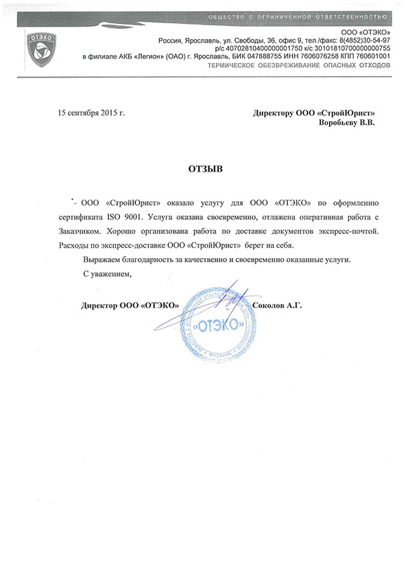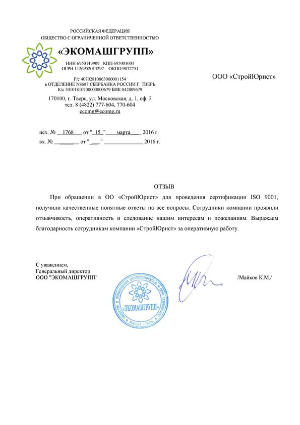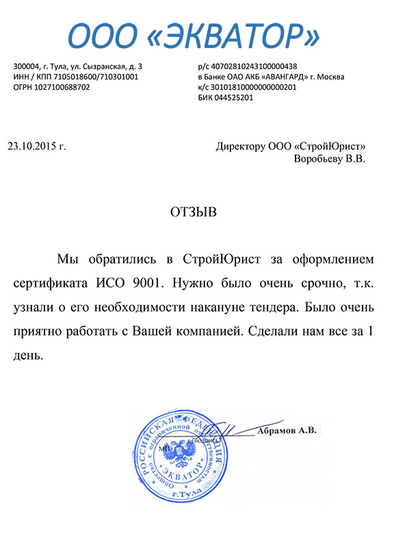 Отзывы клиентов "СтройЮрист" по ISO в Калуге
